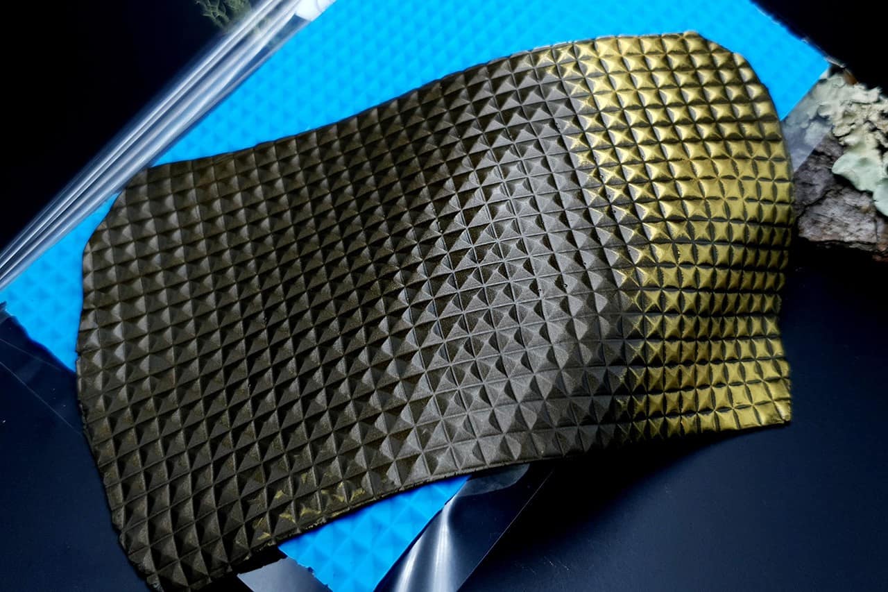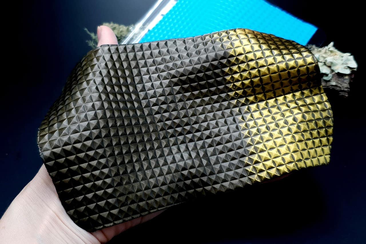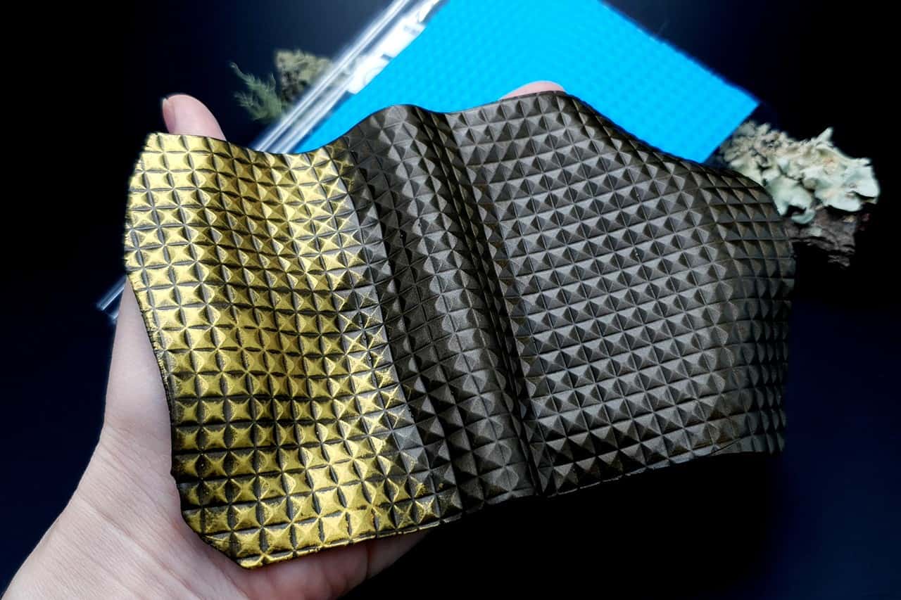 Я зробив цю текстуру з силікону, який є гнучким і не потребує роздільної речовини. Його можна випікати при температурі 150°C і використовувати з усіма марками полімерної глини (бажано рекомендується SOFT).