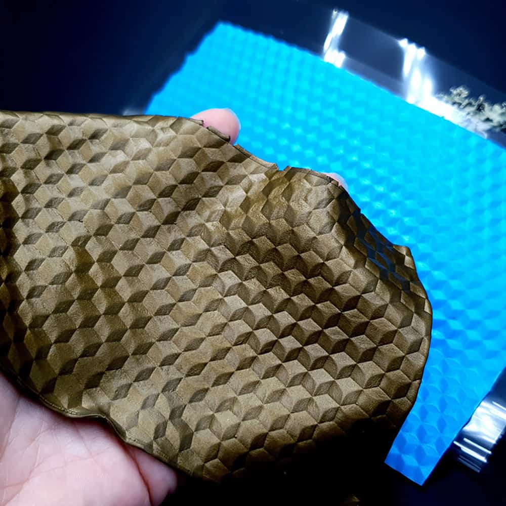 Я зробив цю текстуру з силікону, який є гнучким і не потребує роздільної речовини. Його можна випікати при температурі 150°C і використовувати з усіма марками полімерної глини (бажано рекомендується SOFT).