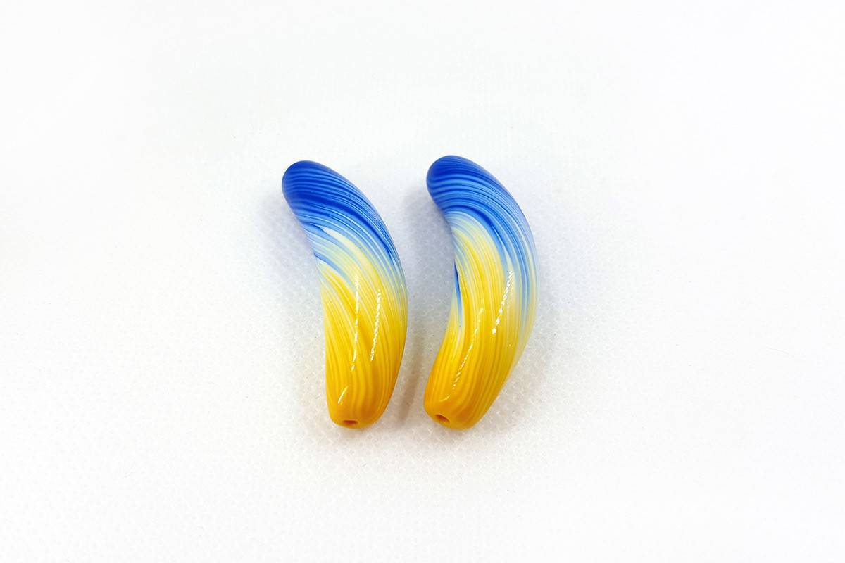 Вигнуті 2 намистини ручної роботи в техніці Міллефіорі