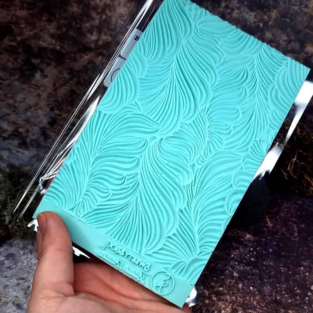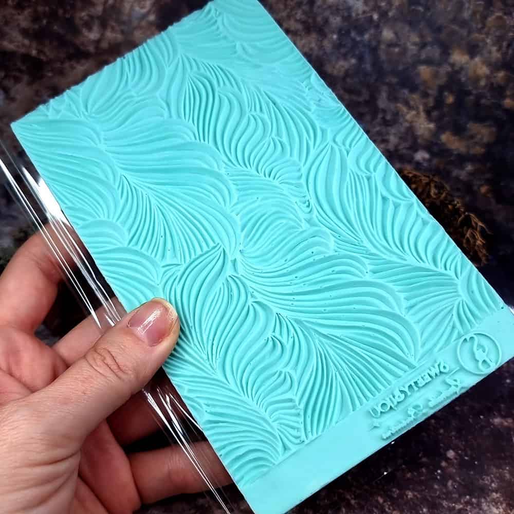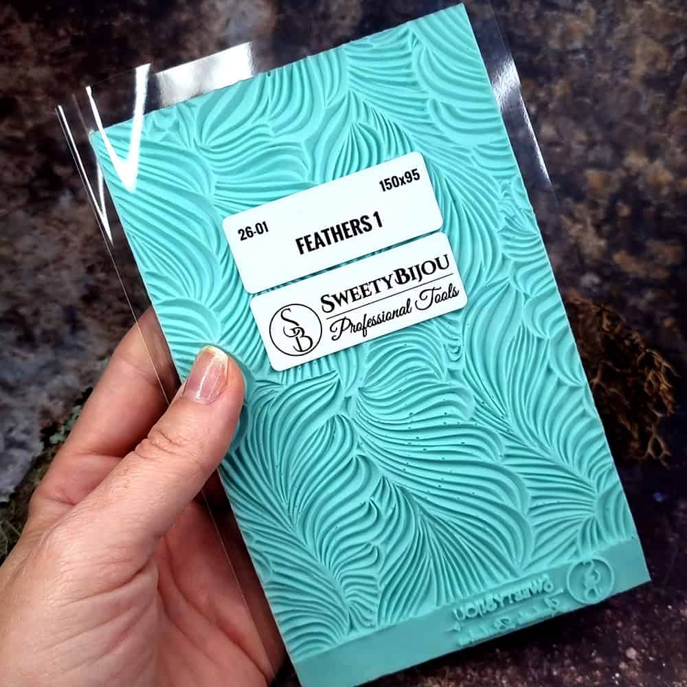 Я зробив цю текстуру з силікону, який є гнучким і не потребує роздільної речовини. Його можна випікати при температурі 150°C і використовувати з усіма марками полімерної глини (бажано рекомендується SOFT).