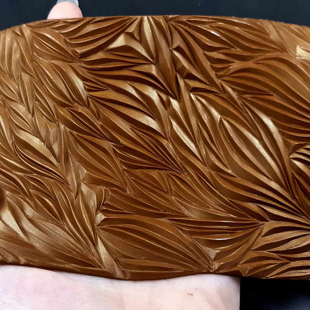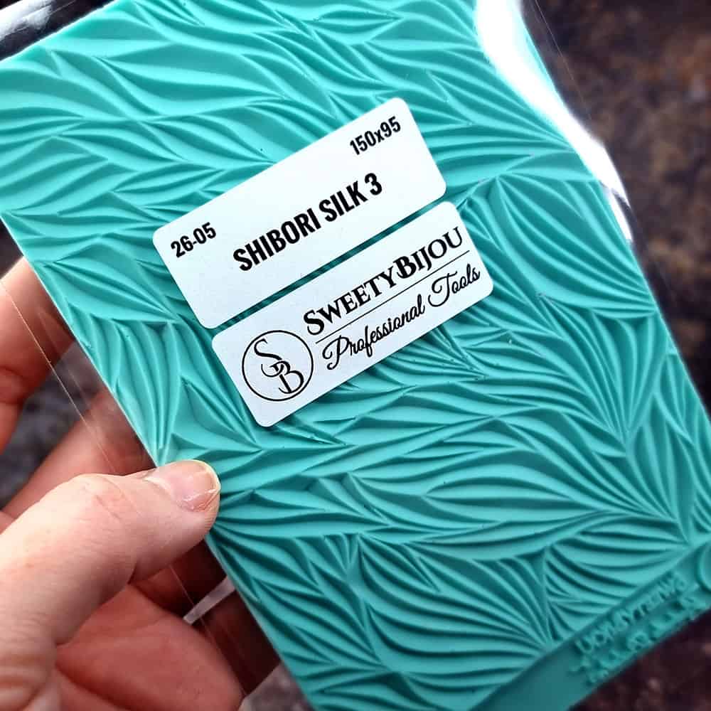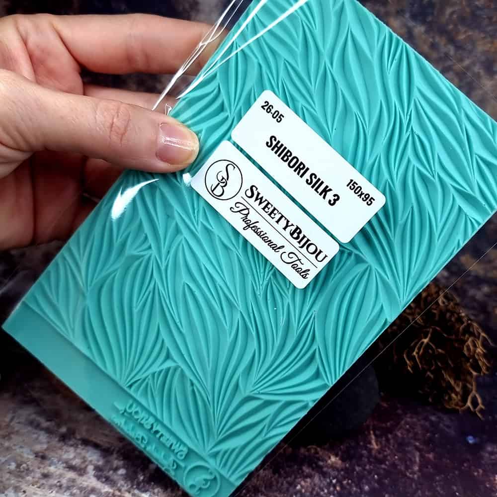 Я зробив цю текстуру з силікону, який є гнучким і не потребує роздільної речовини. Його можна випікати при температурі 150°C і використовувати з усіма марками полімерної глини (бажано рекомендується SOFT).