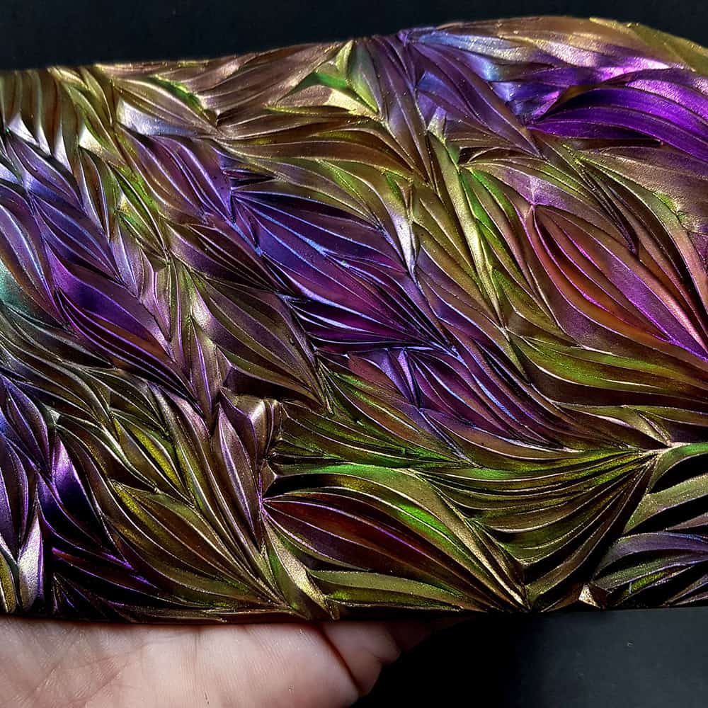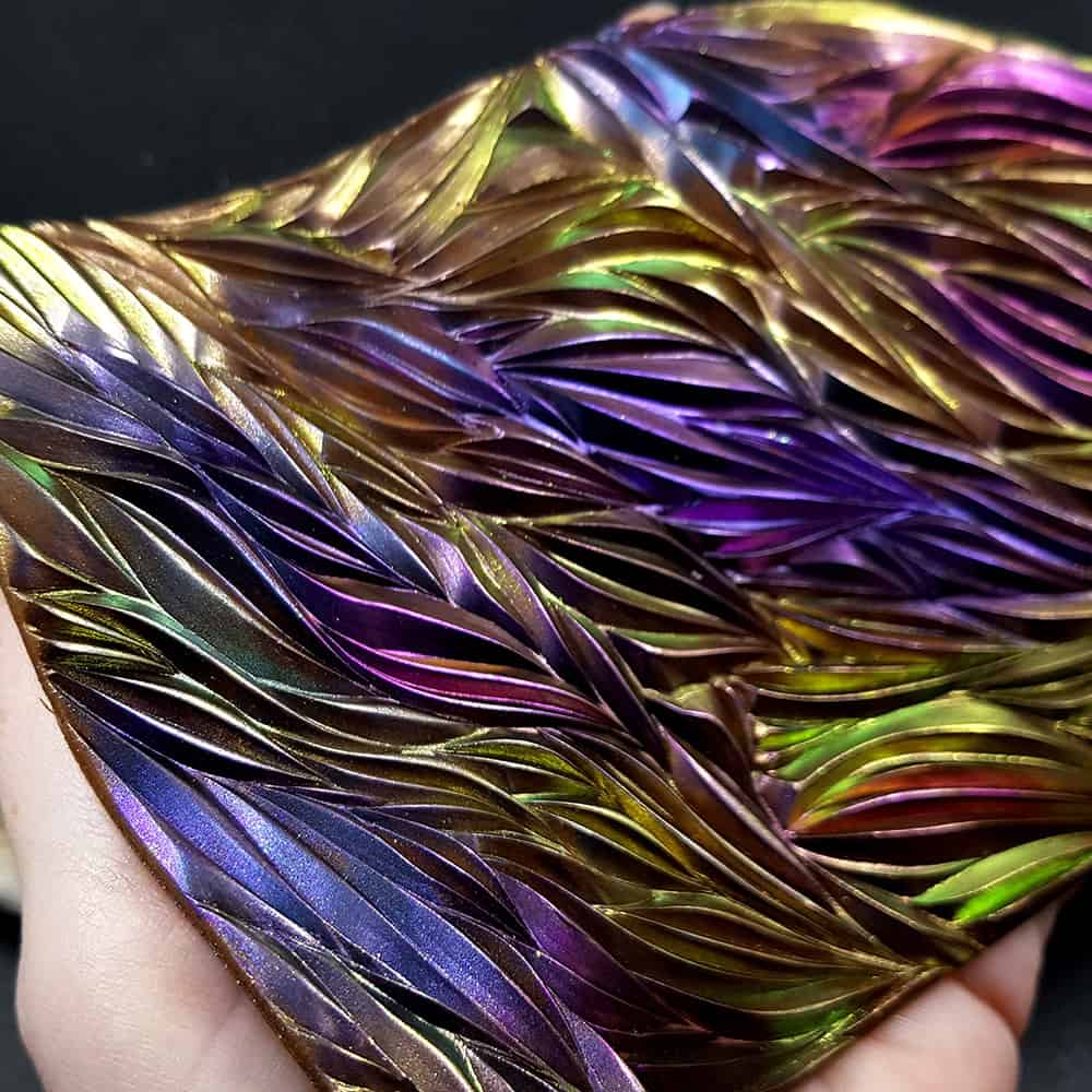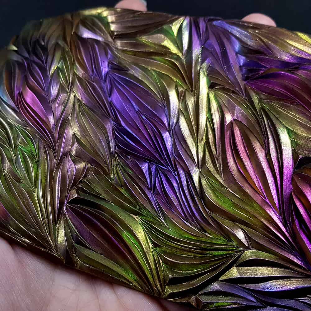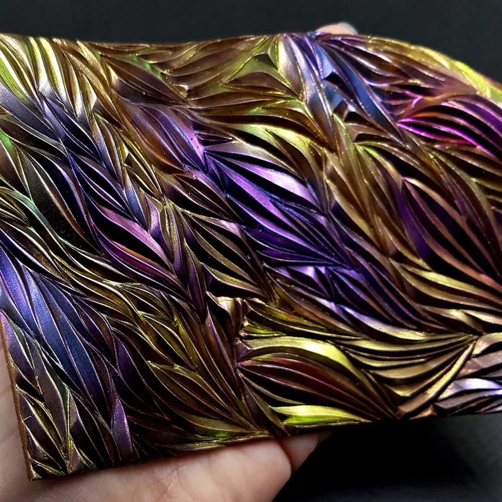 Я зробив цю текстуру з силікону, який є гнучким і не потребує роздільної речовини. Його можна випікати при температурі 150°C і використовувати з усіма марками полімерної глини (бажано рекомендується SOFT).