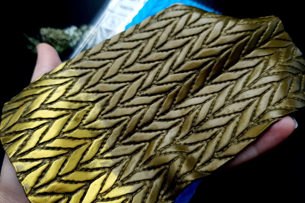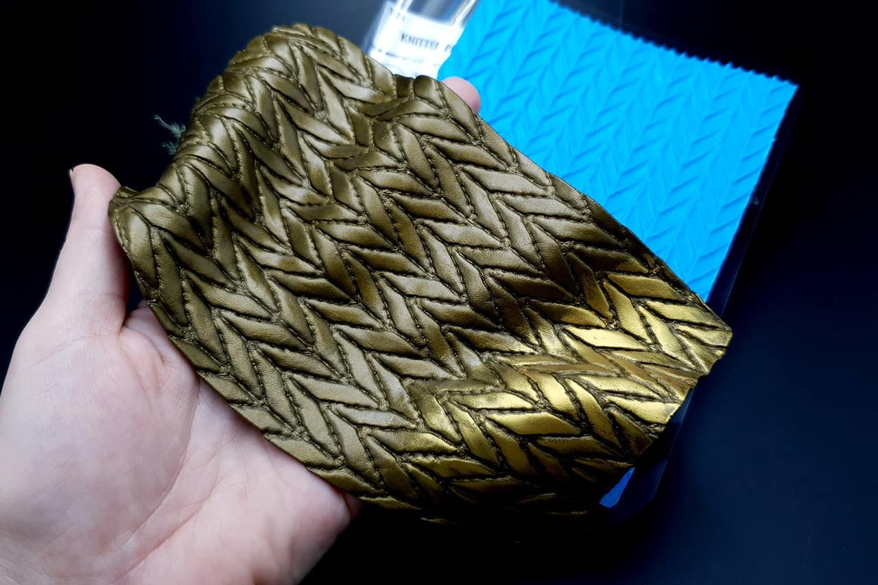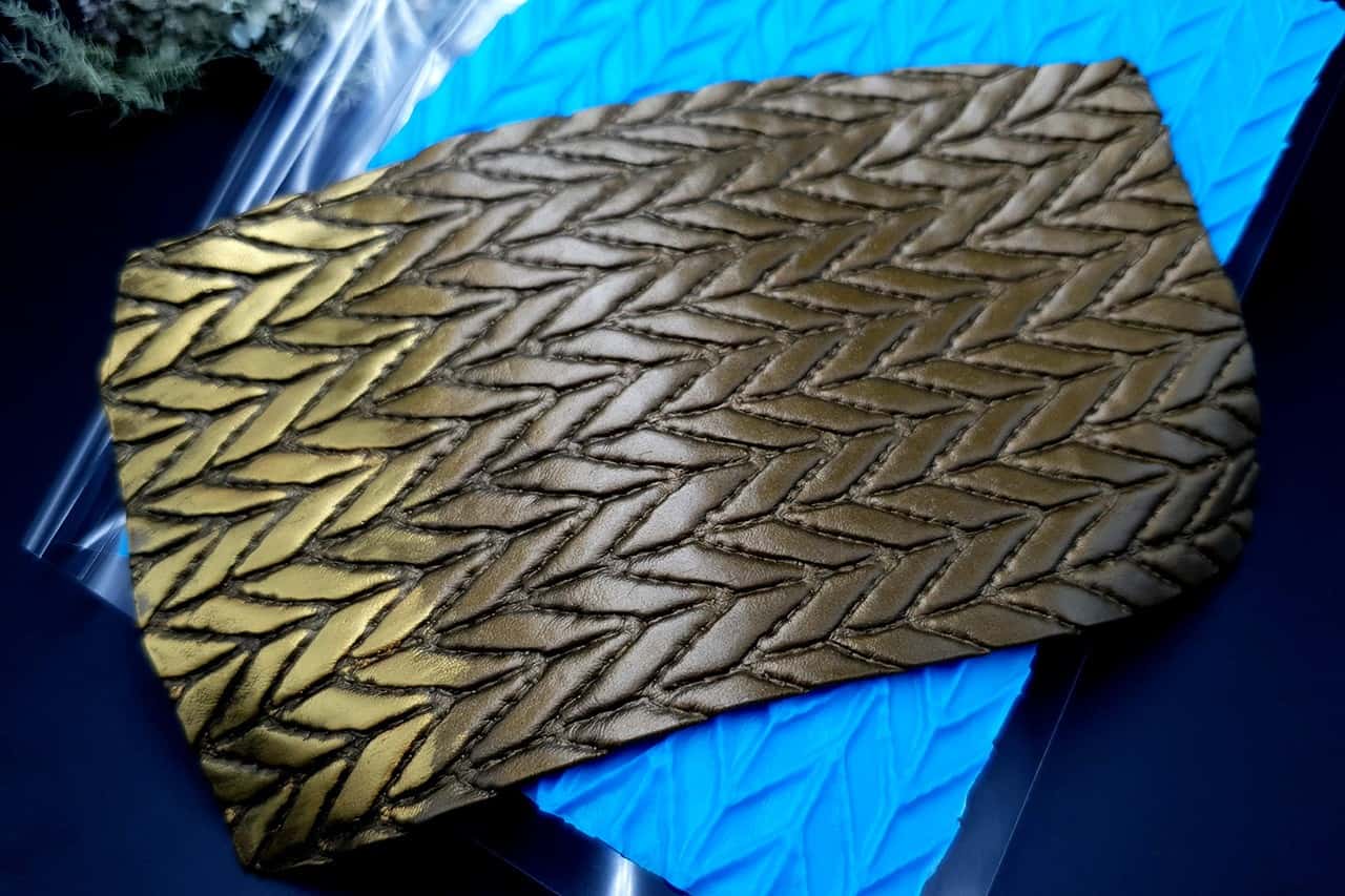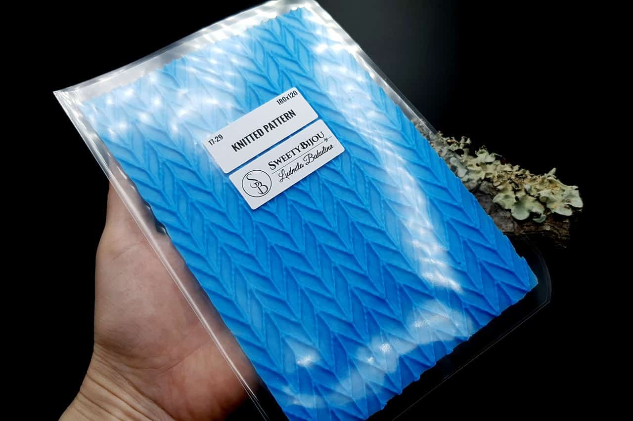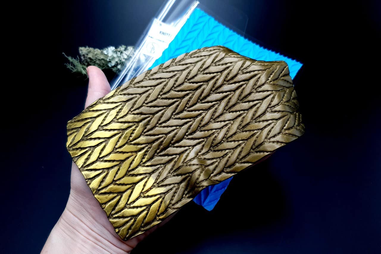 Я зробив цю текстуру з силікону, який є гнучким і не потребує роздільної речовини. Його можна випікати при температурі 150°C і використовувати з усіма марками полімерної глини (бажано рекомендується SOFT).