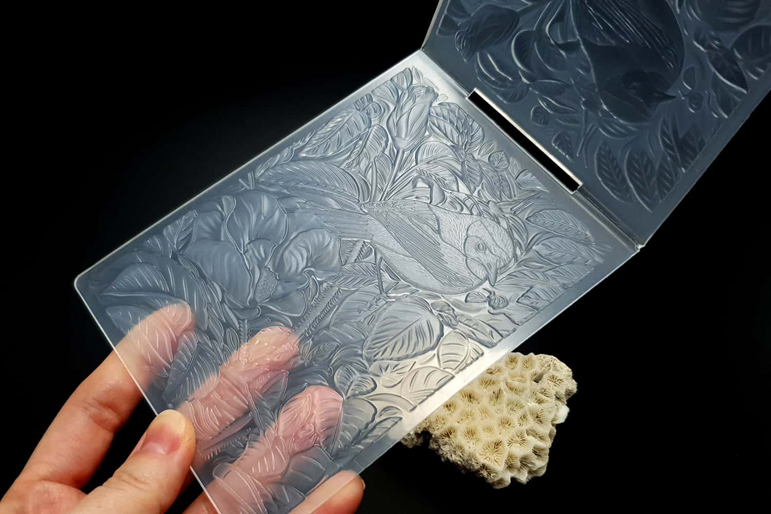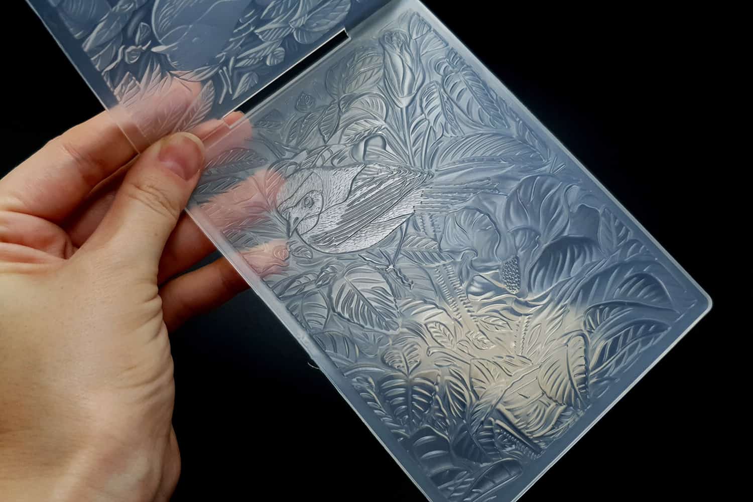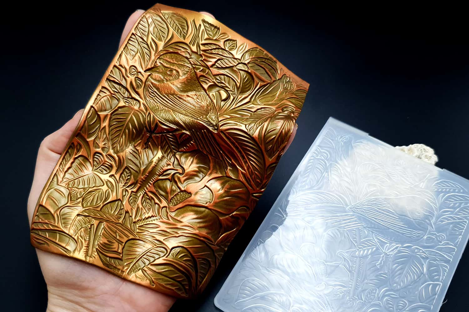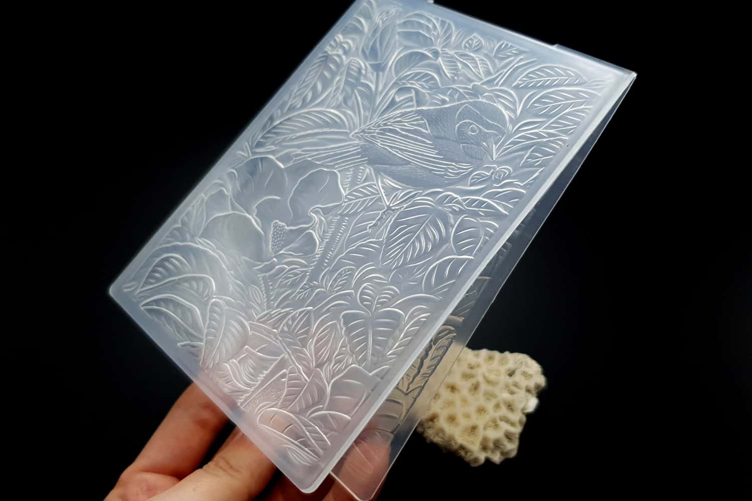Пластикова текстура «Шкіряний птах у лісі» має фантастичний дизайн і візерунок для вашої роботи з полімерної глини або чудового подарунка друзям. Створюйте легкі гарні візерунки на полімерній глині за допомогою великої м’якої губки, щоб додати гарний дизайн своєму художньому проекту!