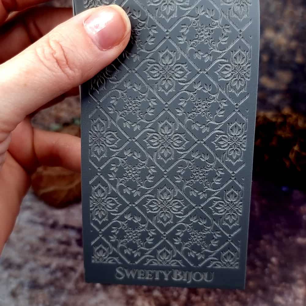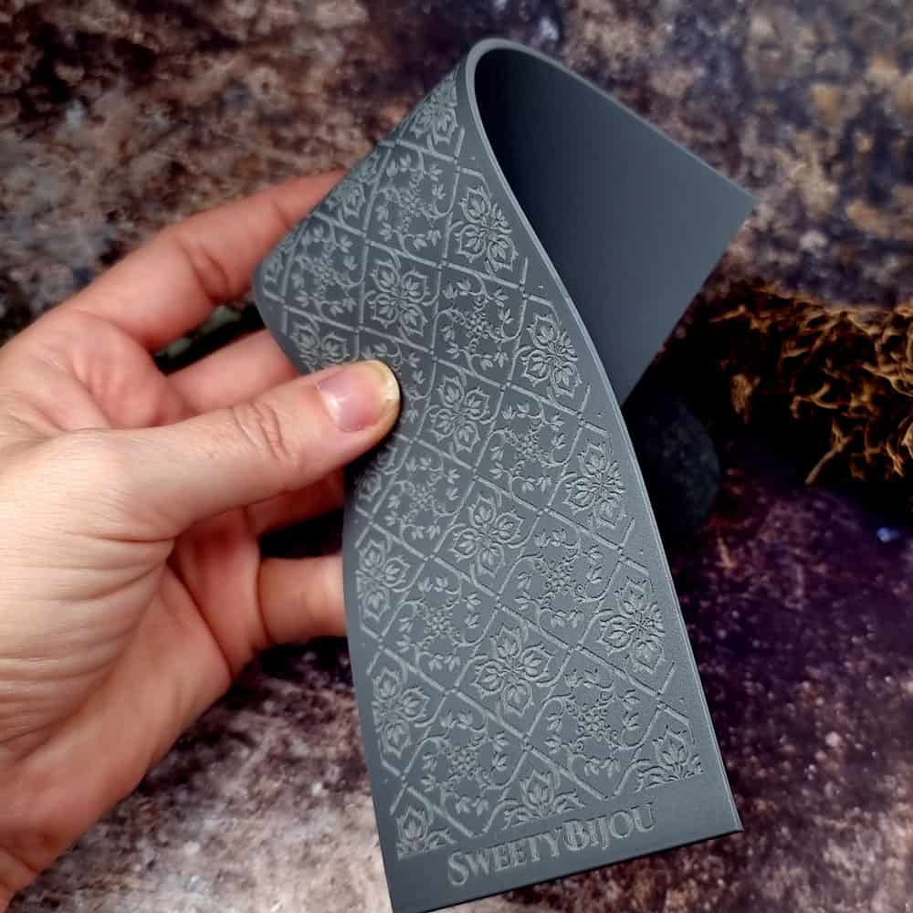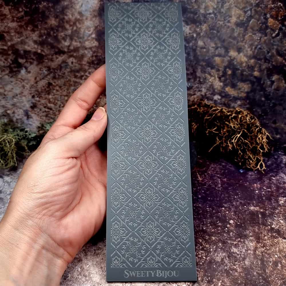 Виготовлений із найтоншої гуми, цей текстурний лист створений для того, щоб складні деталі дамаського візерунка були точно відбиті на полімерній або металевій глині. Це дозволяє ювелірним майстрам створювати вироби, які випромінюють розкіш і велич епохи бароко. Кожен відбиток, зроблений за допомогою фактури «Бароковий Дамаск», призведе до виробу, який стане не просто аксесуаром, а свідченням мистецтва та історії.