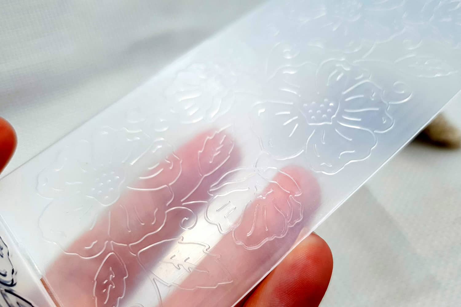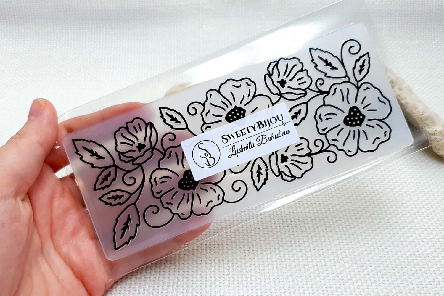 Пластикова фактура «Квіти №2» має фантастичний дизайн і малюнок для вашої роботи з полімерної глини або чудового подарунка друзям. Створюйте легкі гарні візерунки на полімерній глині за допомогою великої м’якої губки, щоб додати гарний дизайн своєму художньому проекту!
