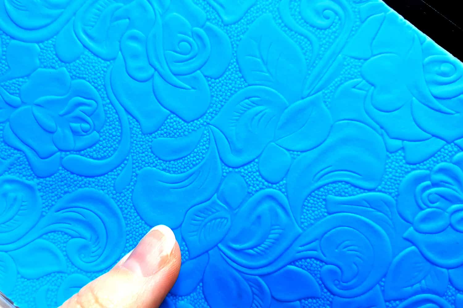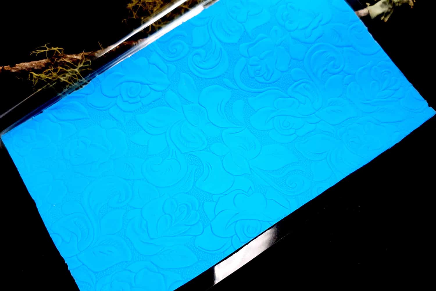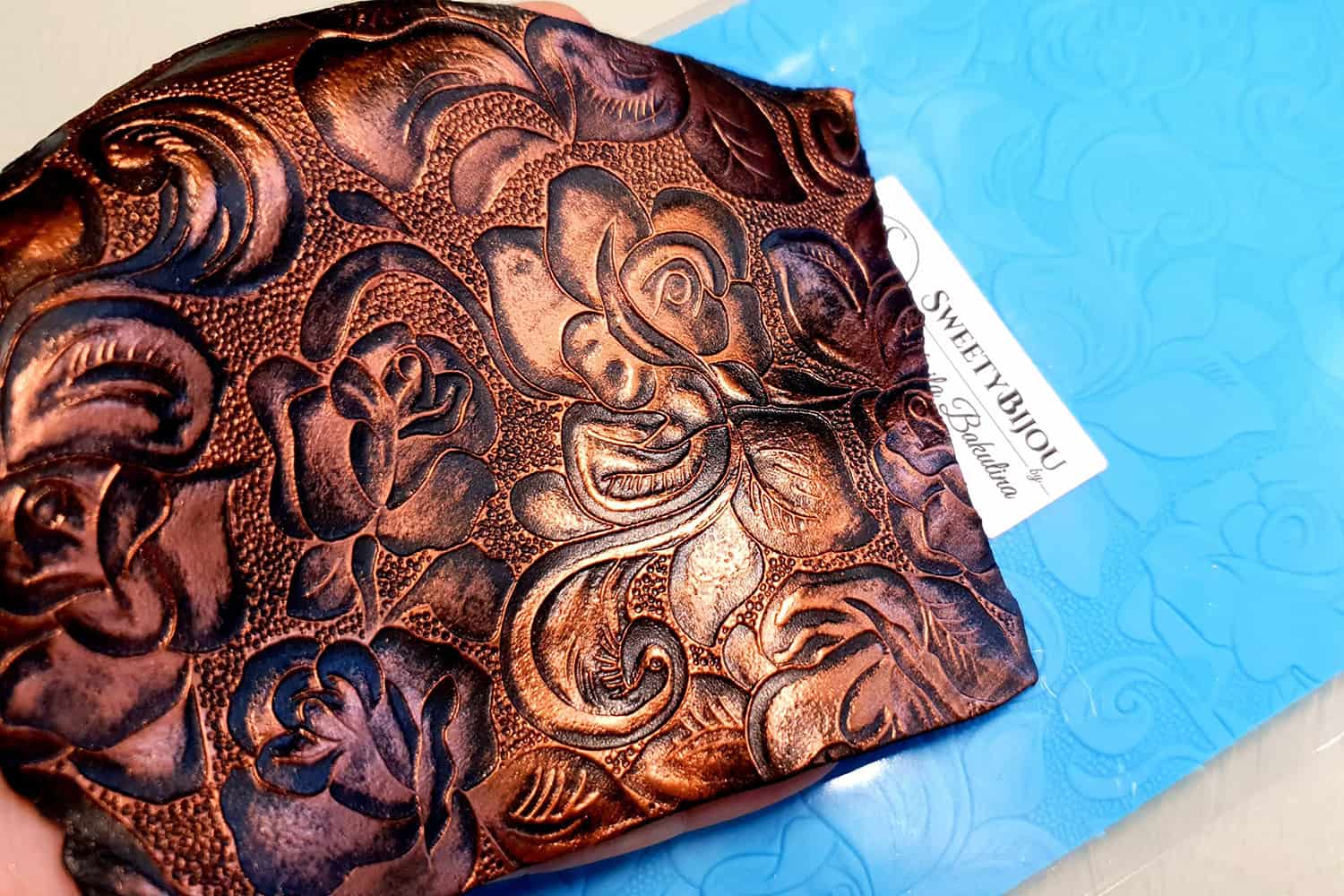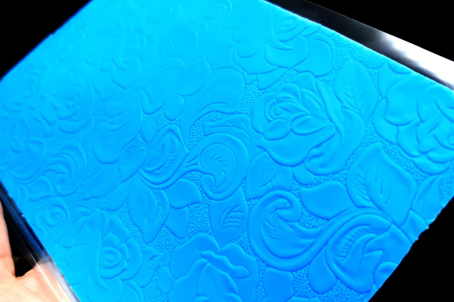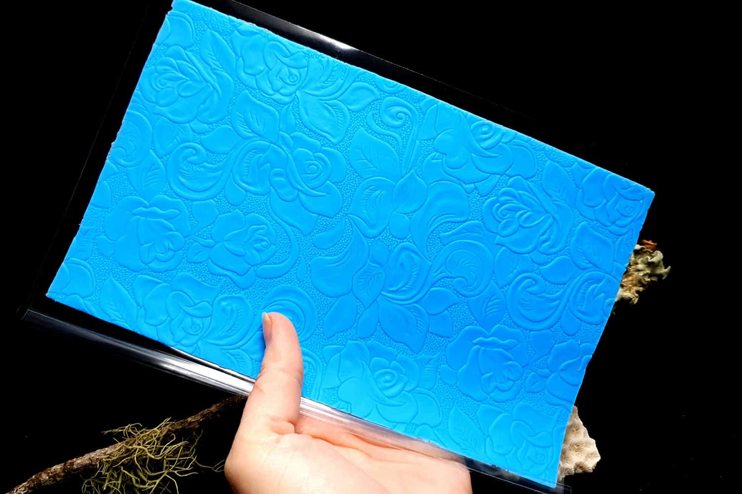 Я зробив цю текстуру з силікону, який є гнучким і не потребує роздільної речовини. Його можна випікати при температурі 150°C і використовувати з усіма марками полімерної глини (бажано рекомендується SOFT).