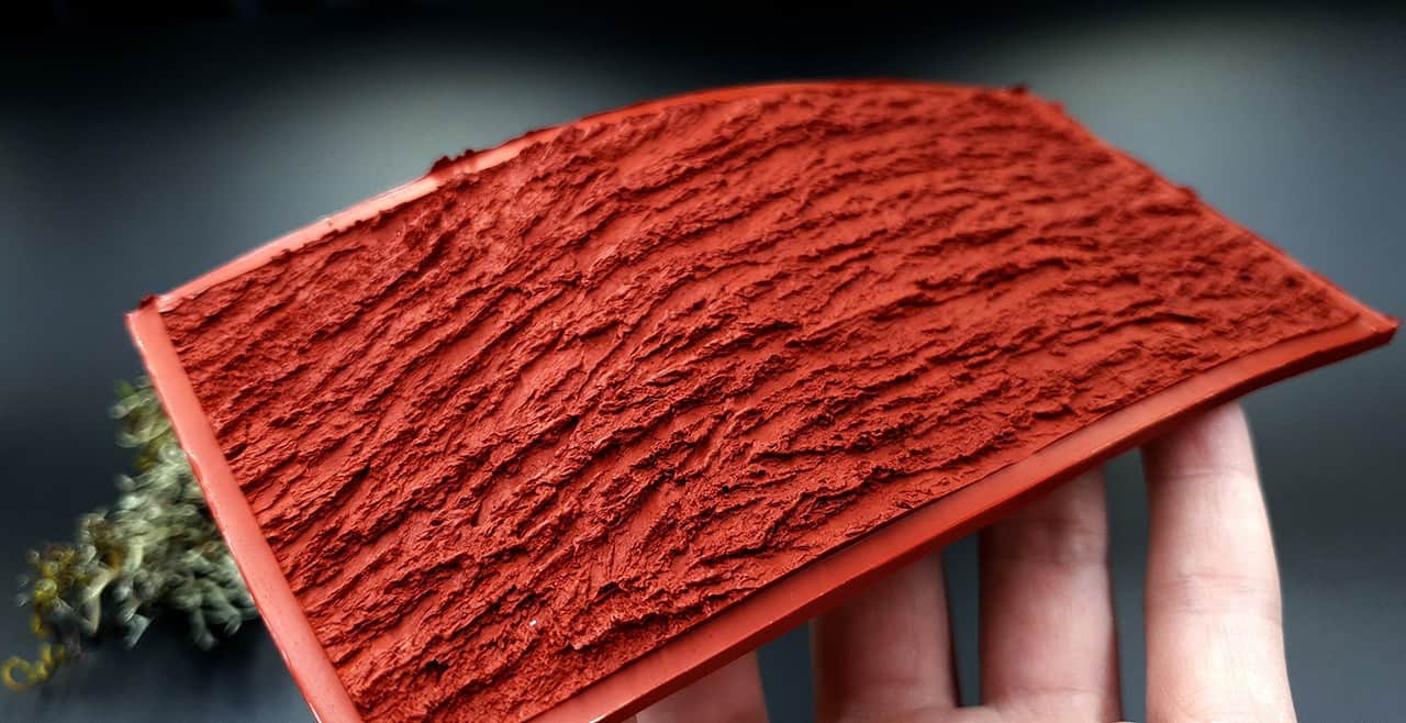 Я зробив цю текстуру з силікону, який є гнучким і не потребує роздільної речовини. Його можна випікати при температурі 150°C і використовувати з усіма марками полімерної глини (бажано рекомендується SOFT).