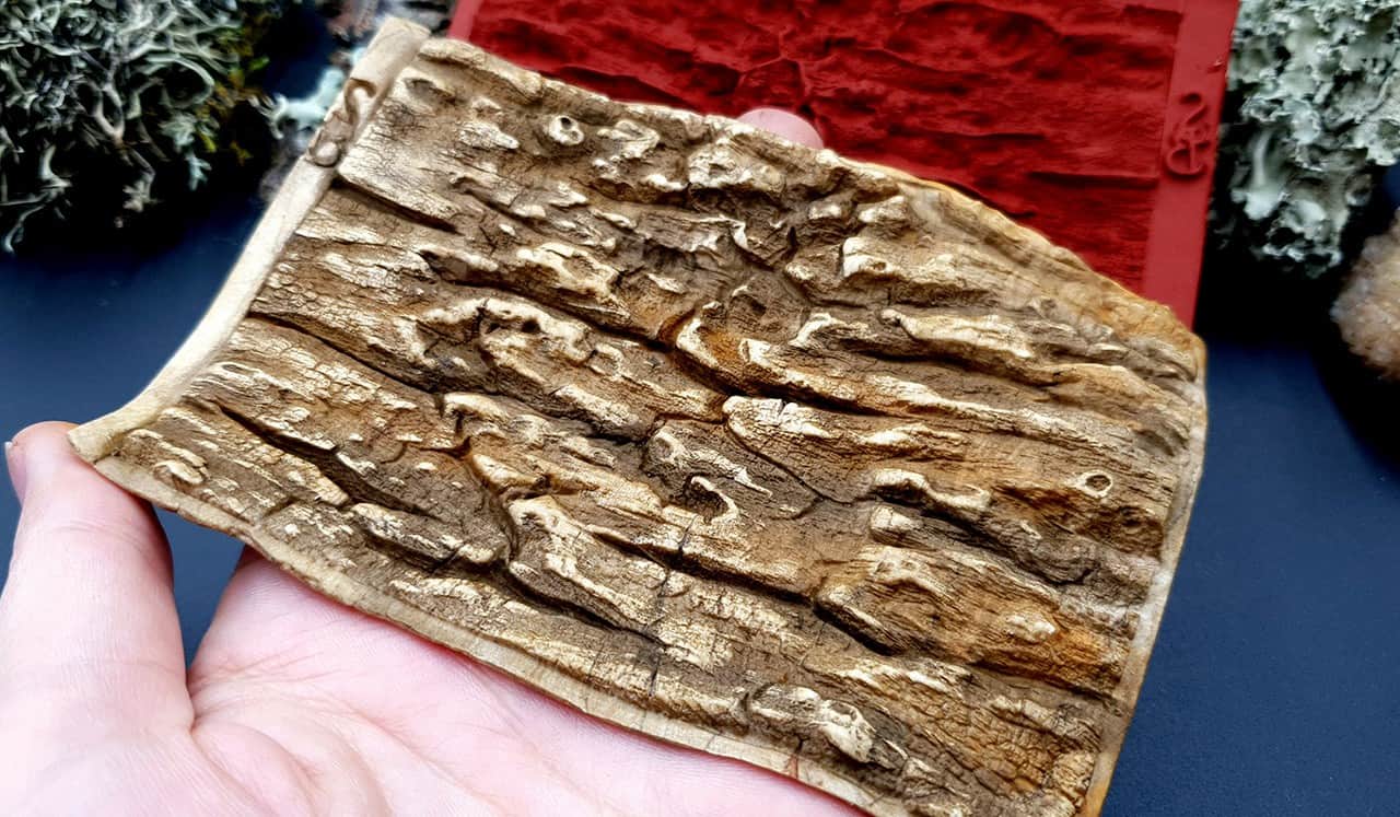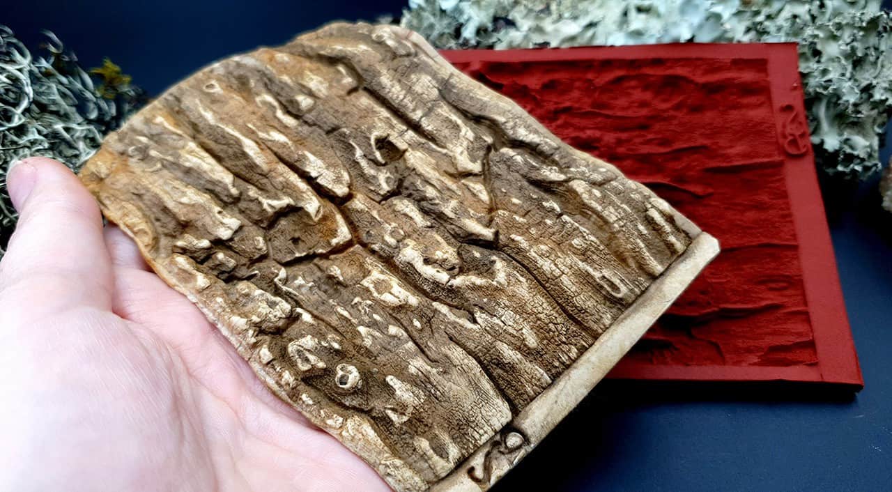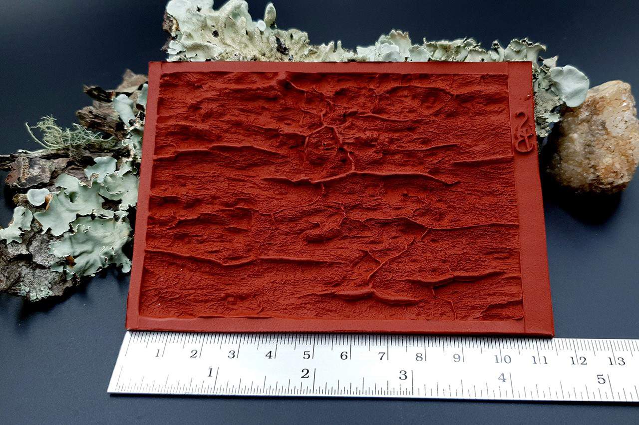 Я зробив цю текстуру з силікону, який є гнучким і не потребує роздільної речовини. Його можна випікати при температурі 150°C і використовувати з усіма марками полімерної глини (бажано рекомендується SOFT).