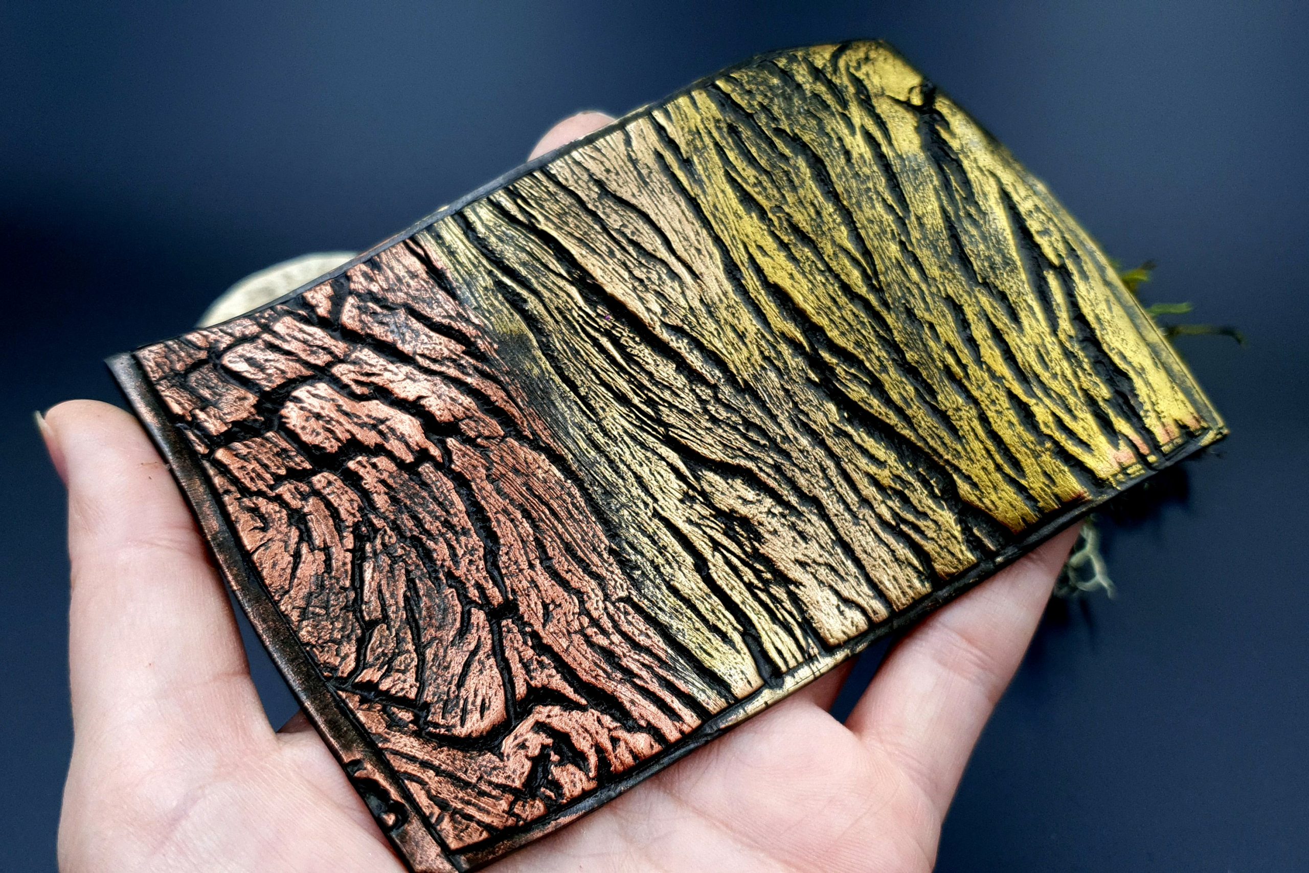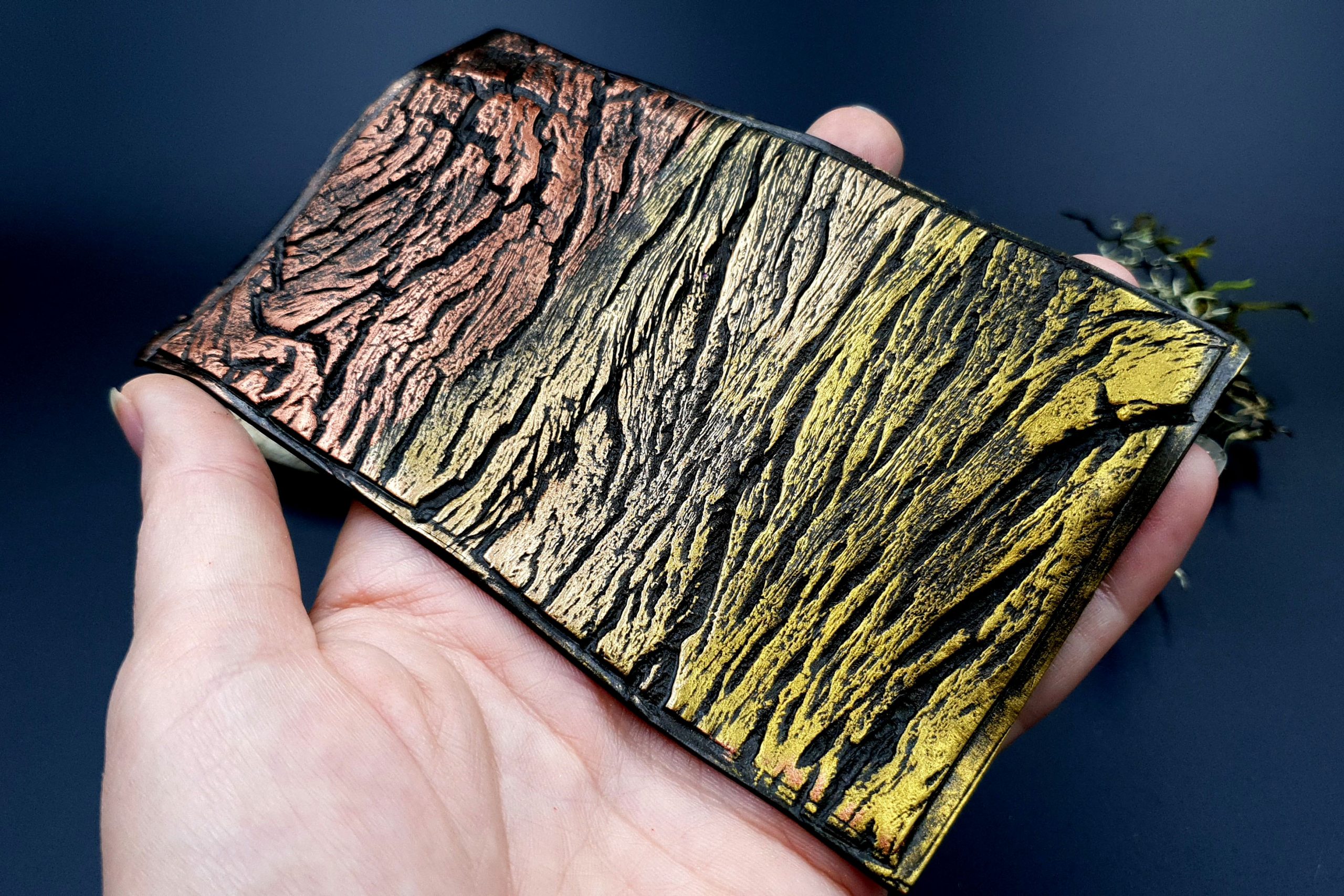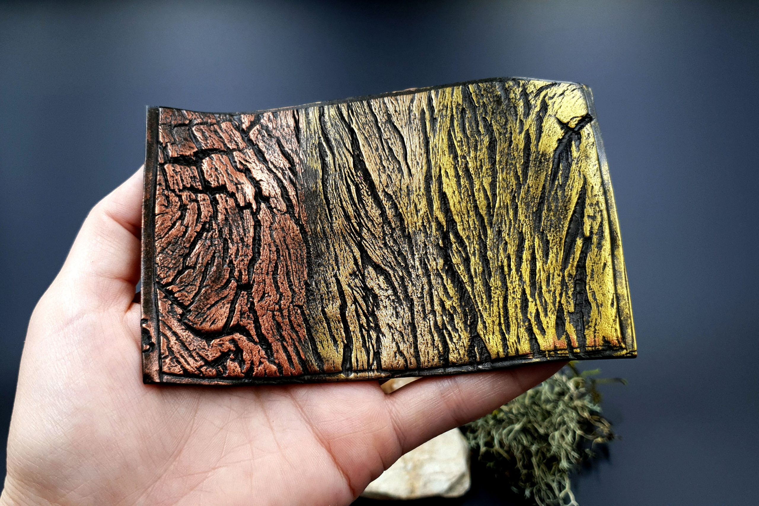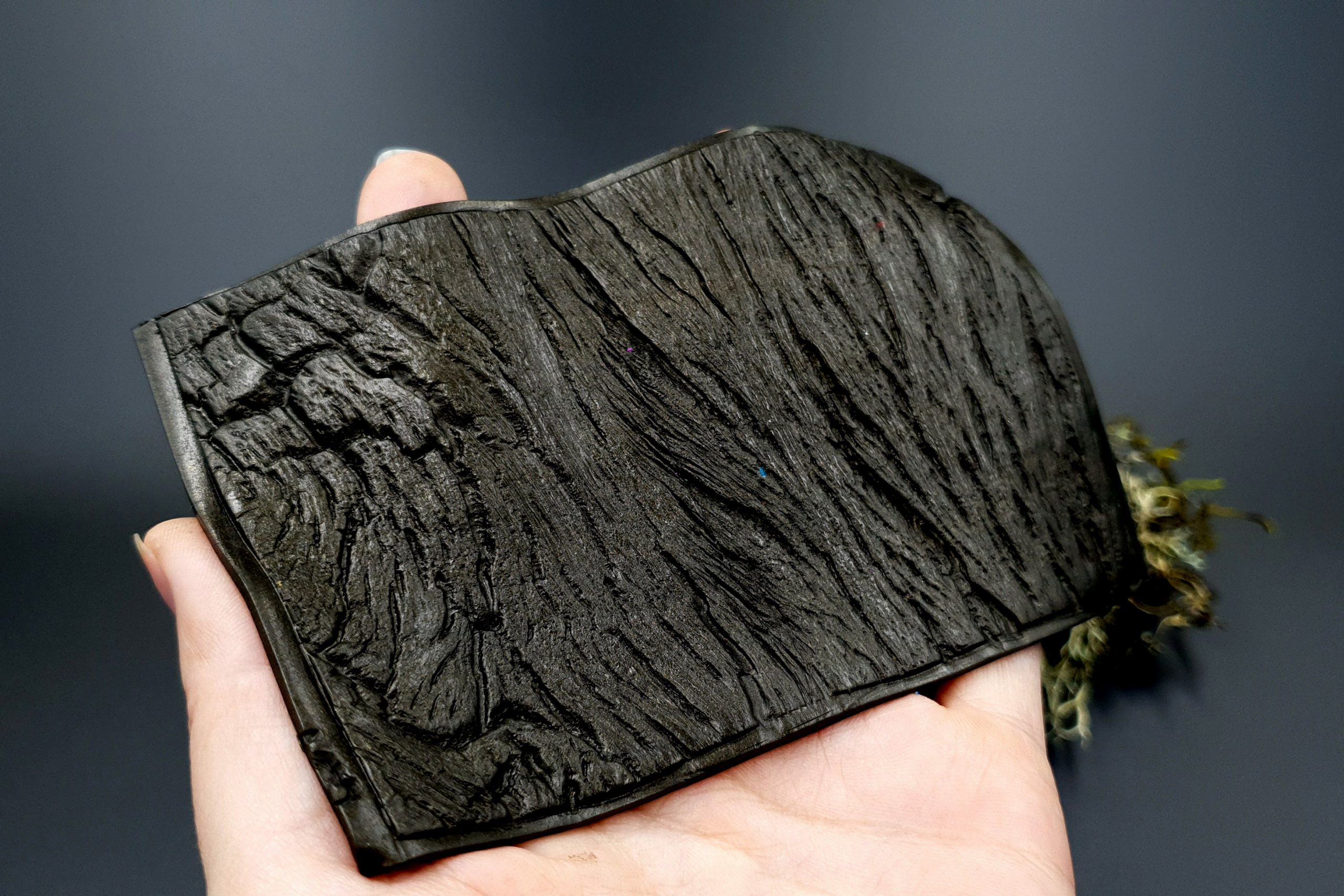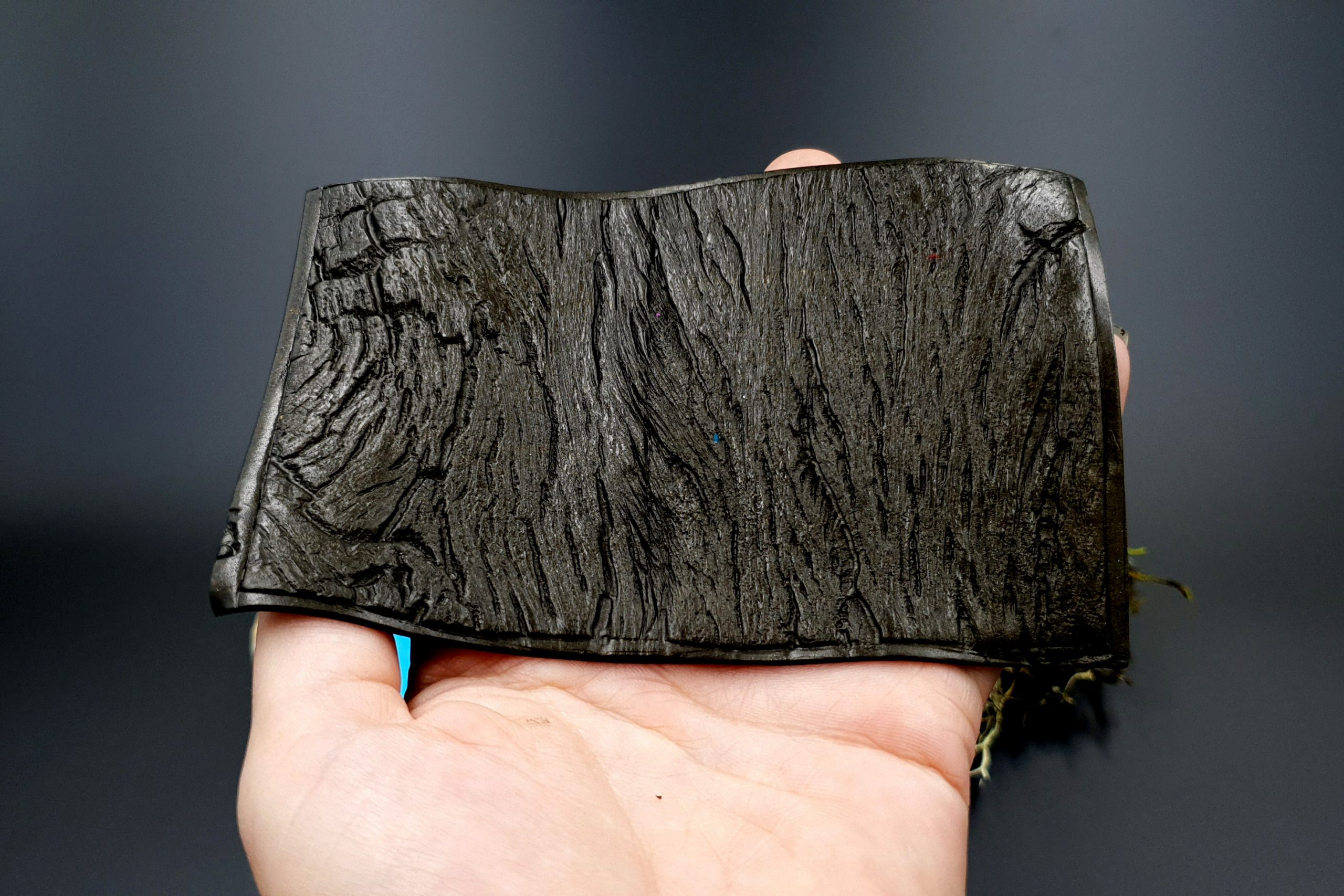 Я зробив цю текстуру з силікону, який є гнучким і не потребує роздільної речовини. Його можна випікати при температурі 150°C і використовувати з усіма марками полімерної глини (бажано рекомендується SOFT).
