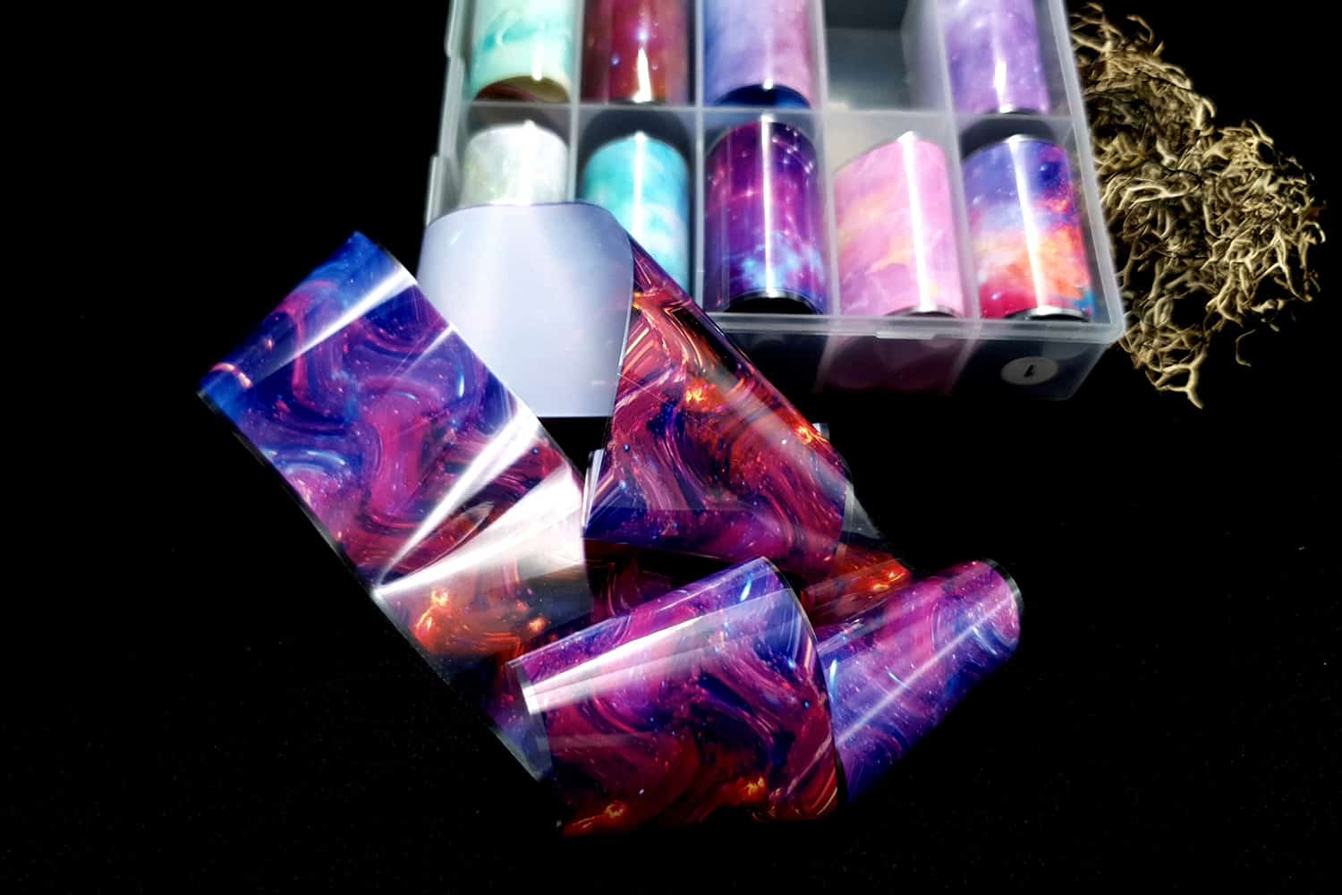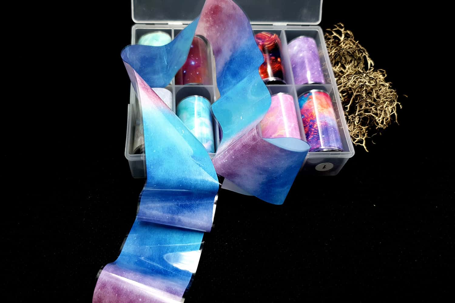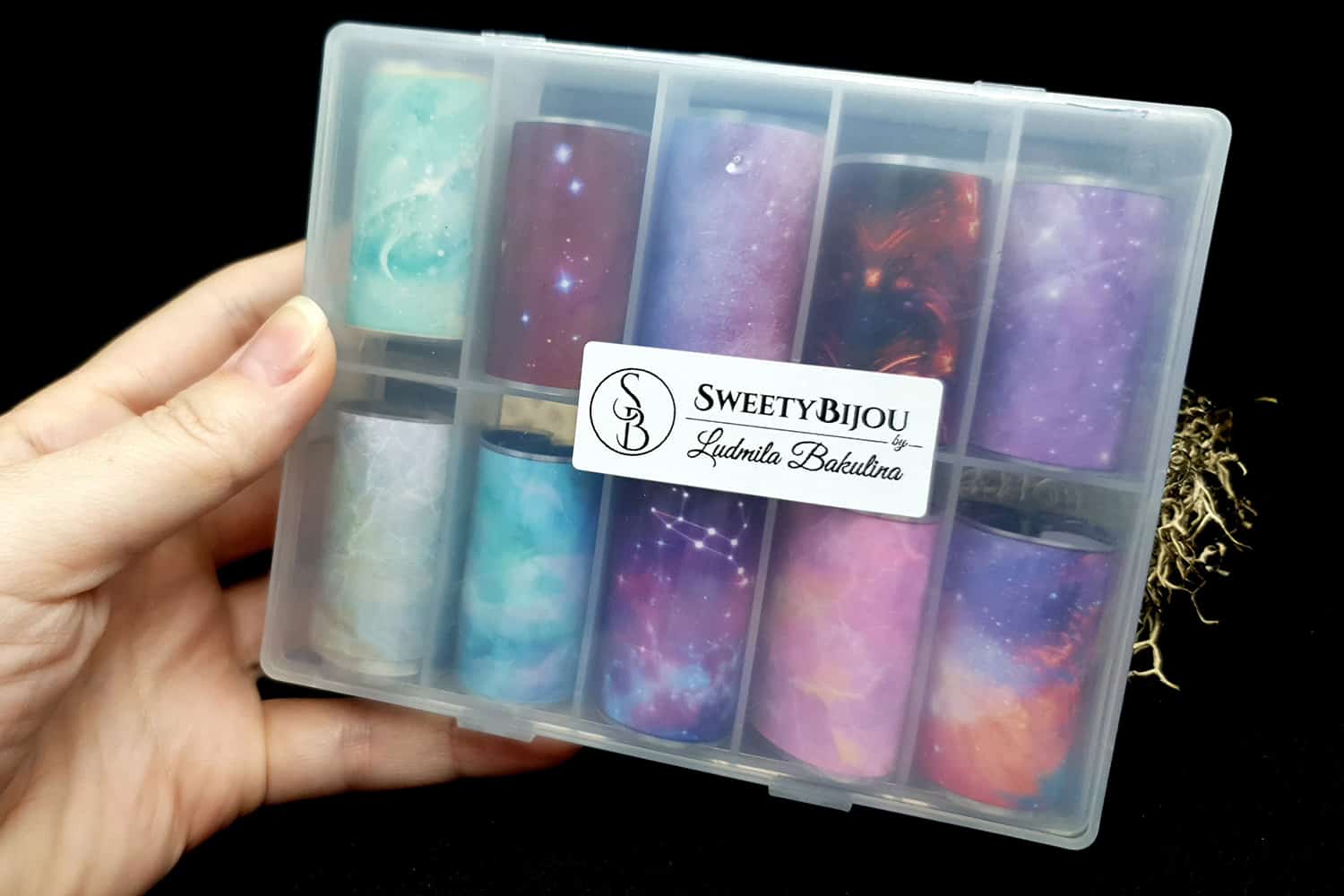 Фольга «Космос і зірки» — дивовижний матеріал, який можна легко використовувати в багатьох проектах з полімерної глини. Фольга дає унікальний ефект, оскільки має барвисті, металеві, перламутрові та голографічні ефекти! При використанні на сирій глині – фольга може тріснути, поки глина розтягується, що є дійсно чудовим ефектом.