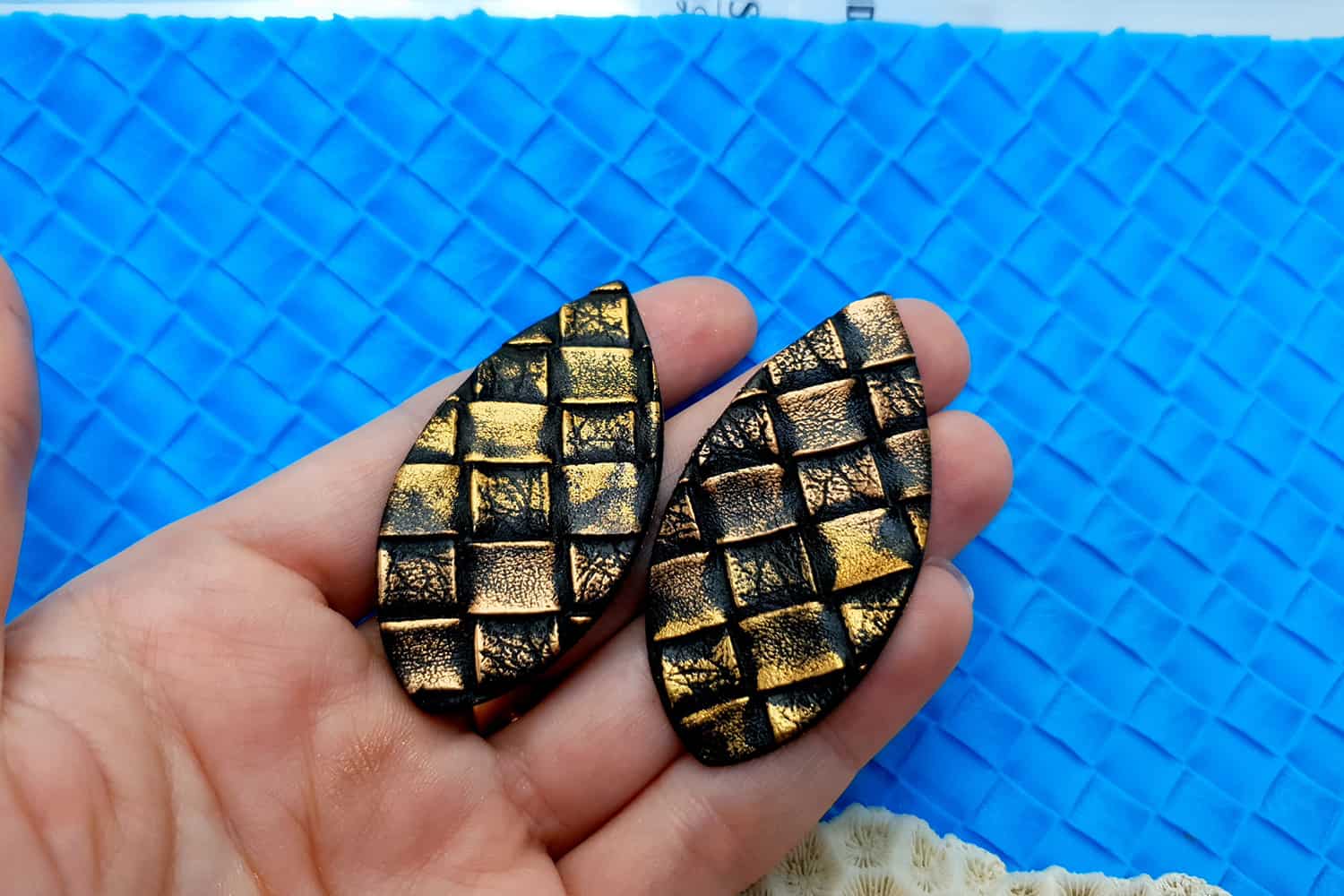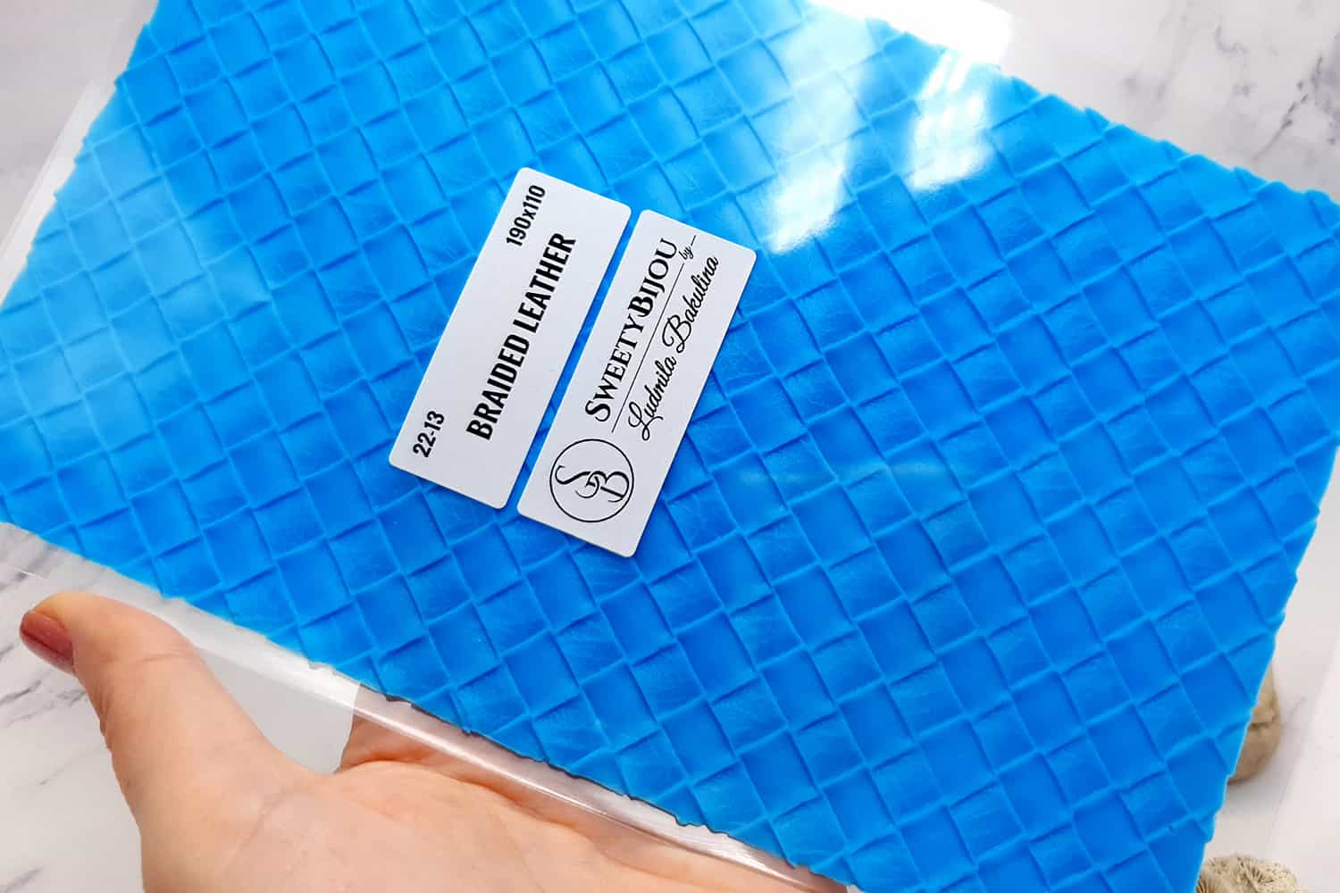 Я зробив цю текстуру з силікону, який є гнучким і не потребує роздільної речовини. Його можна випікати при температурі 150°C і використовувати з усіма марками полімерної глини (бажано рекомендується SOFT).