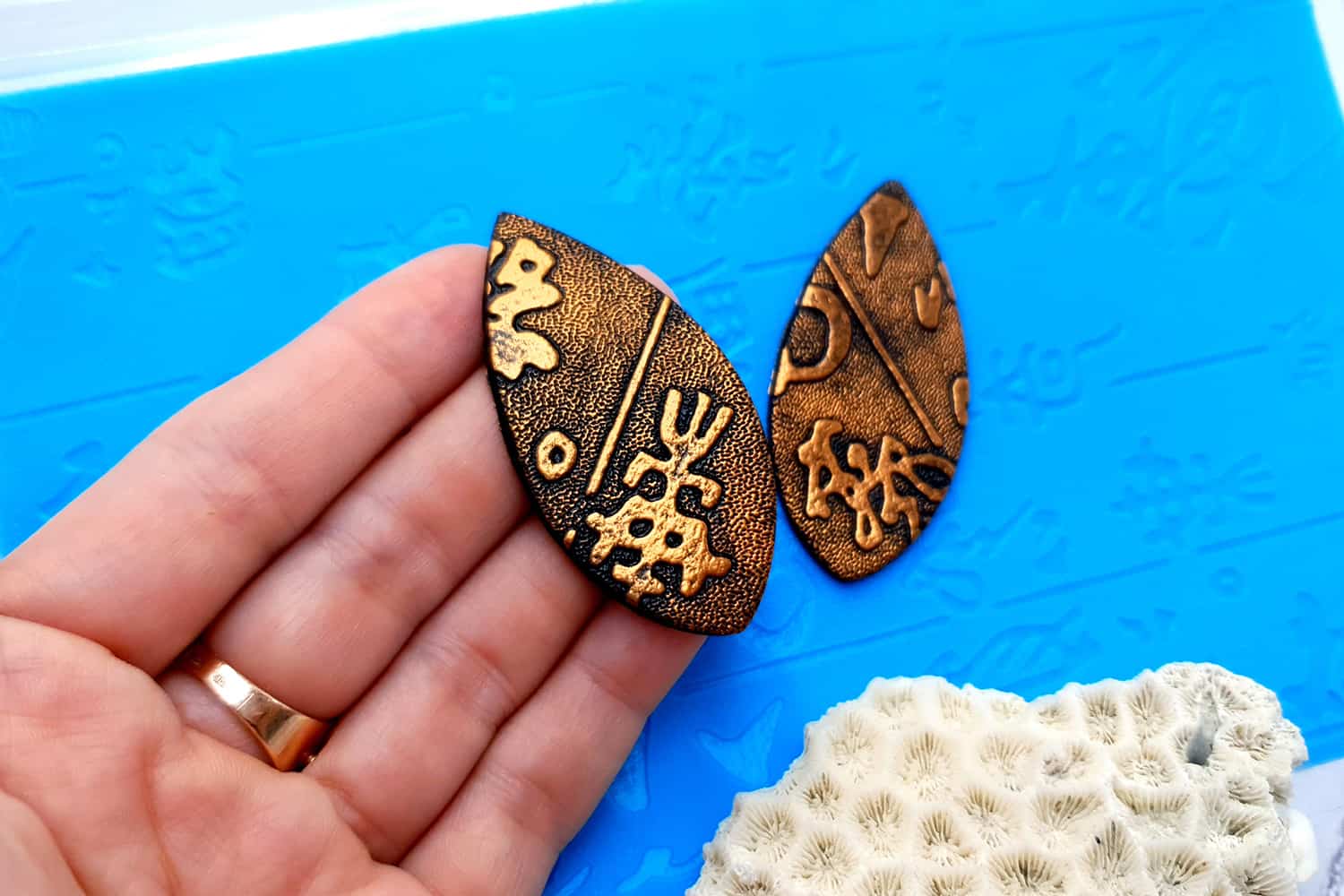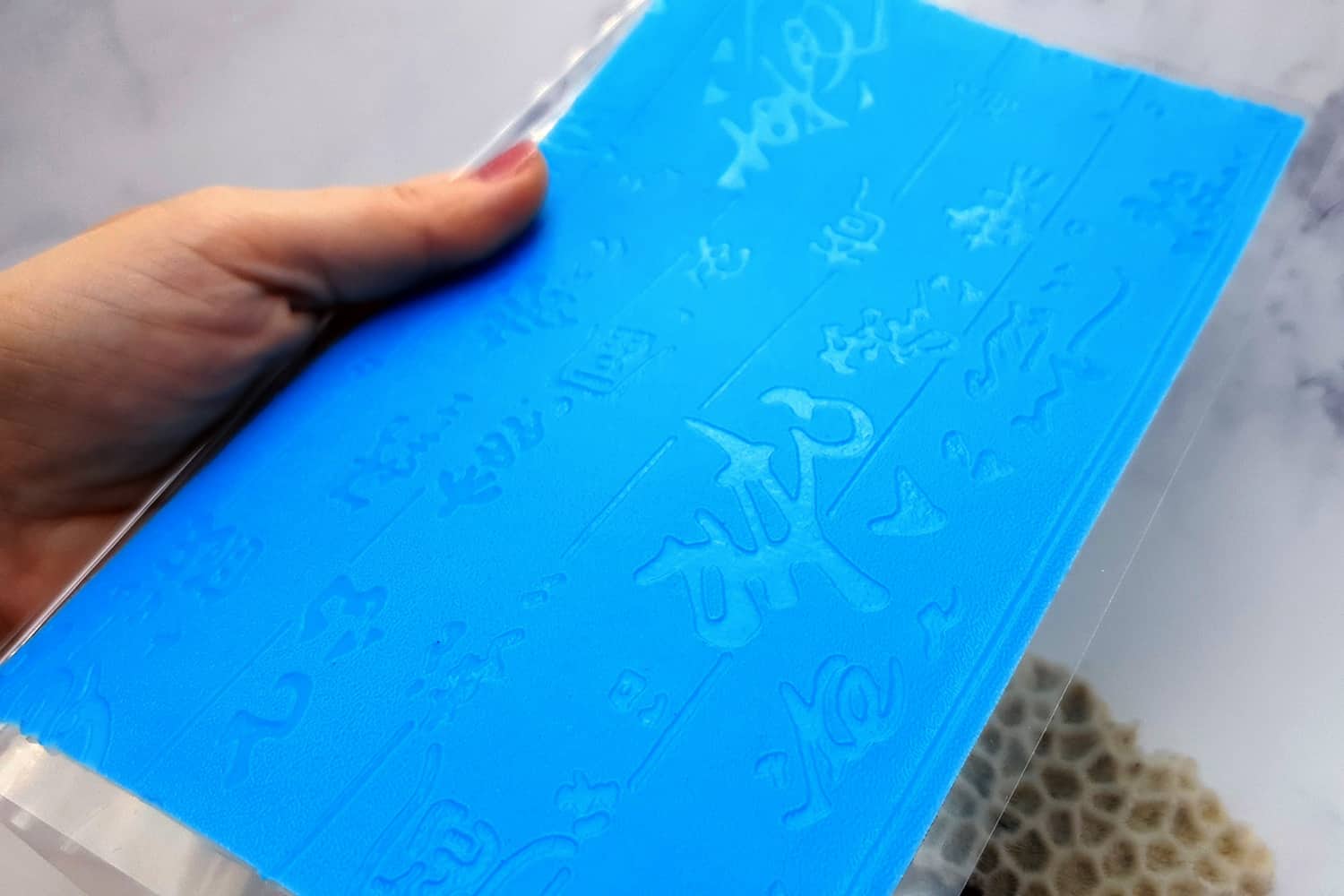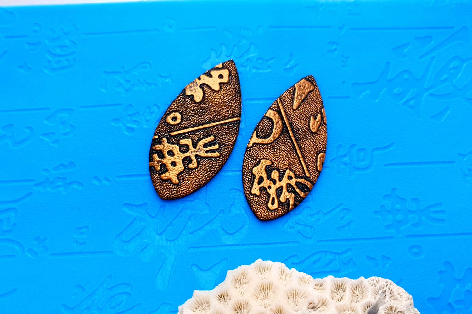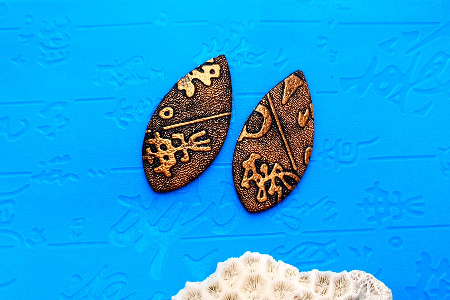 Я зробив цю текстуру з силікону, який є гнучким і не потребує роздільної речовини. Його можна випікати при температурі 150°C і використовувати з усіма марками полімерної глини (бажано рекомендується SOFT).