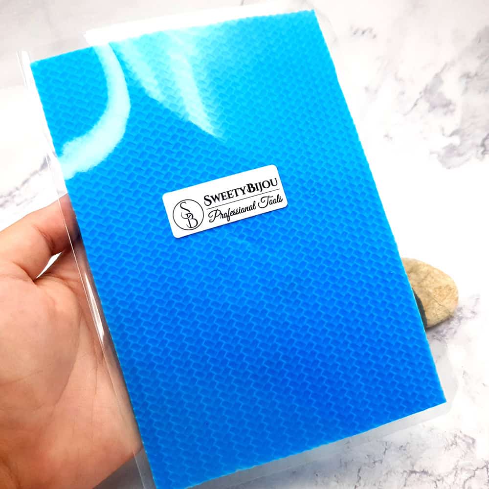 Я зробив цю текстуру з силікону, який є гнучким і не потребує роздільної речовини. Його можна випікати при температурі 150°C і використовувати з усіма марками полімерної глини (бажано рекомендується SOFT).