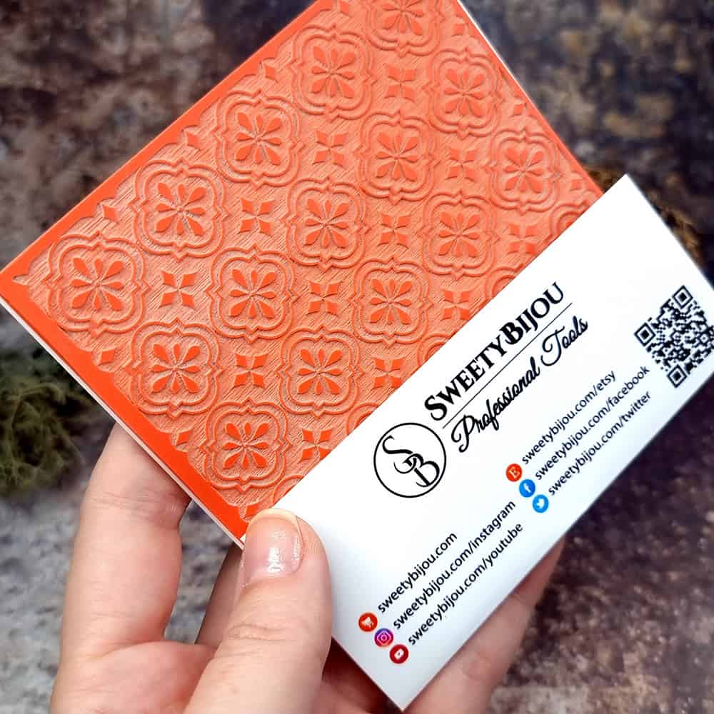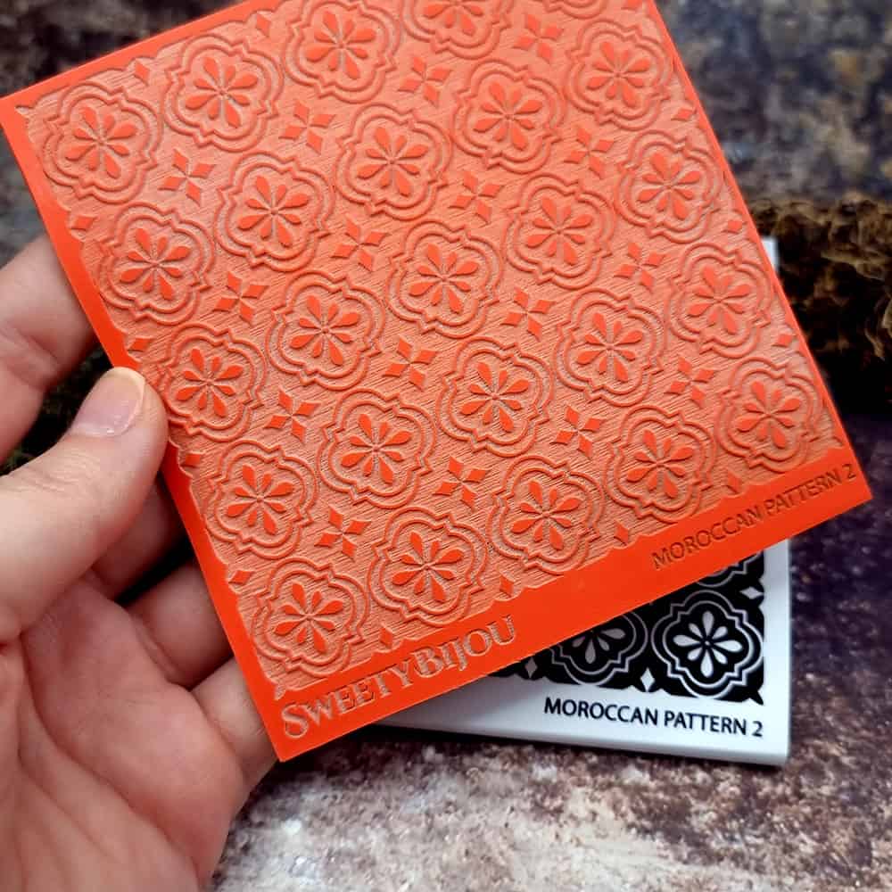 Текстурний гумовий лист «Марокканський візерунок 2» — чудово виготовлений інструмент для майстрів ювелірних виробів, який пропонує захоплюючий дизайн, натхненний багатою спадщиною марокканської архітектури та текстилю. Цей візерунок може похвалитися серією квіткових мотивів, розташованих у гармонійному мозаїчному дизайні, який одночасно є сміливим і складним.