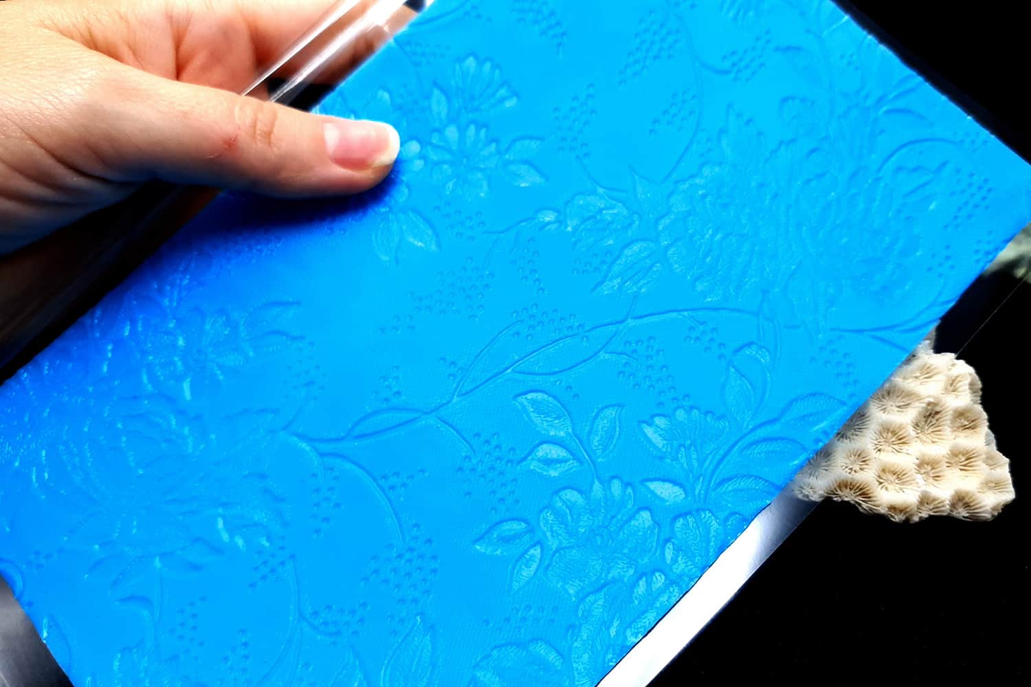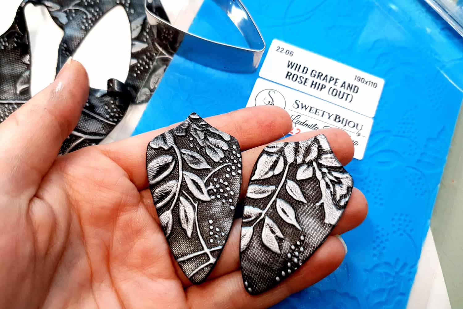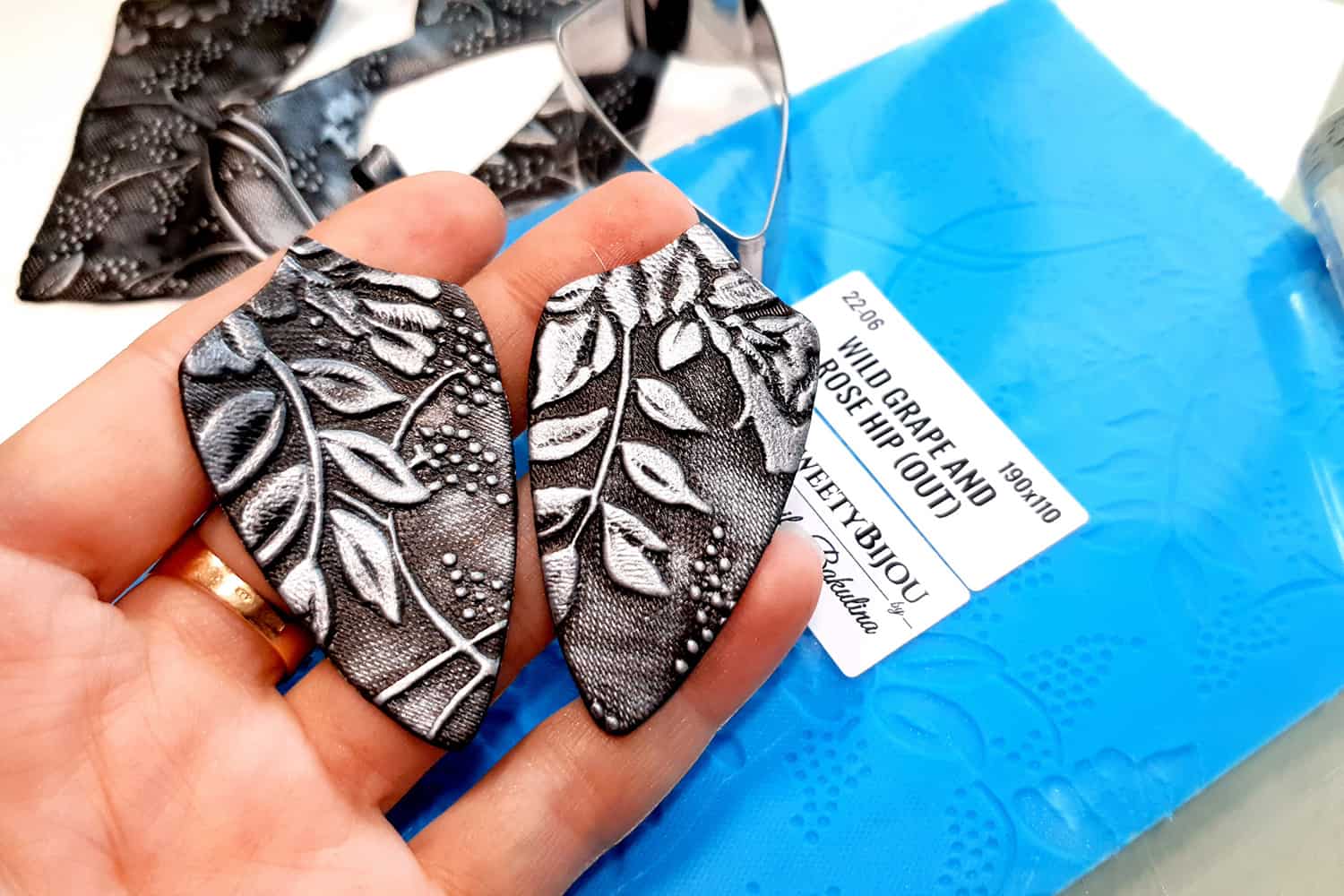 Я зробив цю текстуру з силікону, який є гнучким і не потребує роздільної речовини. Його можна випікати при температурі 150°C і використовувати з усіма марками полімерної глини (бажано рекомендується SOFT).